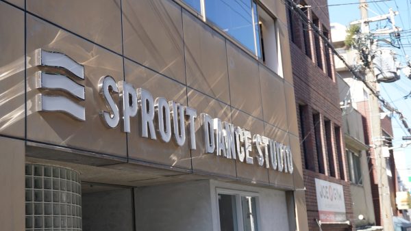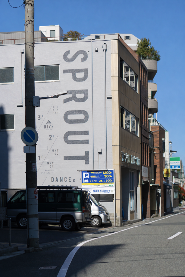 2026年1月に大阪〈うめきたエリア〉に誕生したダンススタジオ「SPROUT DANCE STUDIO 中津店」のサイン一式を手掛けました。このスタジオの顔となるビル壁面の超特大サインは、カッティングシートを用いたステンシル手法の手書きにて施工をしました。入口上部のファサード部は、エイジングの効いたビルの外壁に馴染むようにあえてレトロな〈鏡面〉の箱文字をセレクト。エントランスにも同じく鏡面のエッチングサインを取り付けました。屋外・室内すべてのサイン計画を手掛けさせて頂きました。